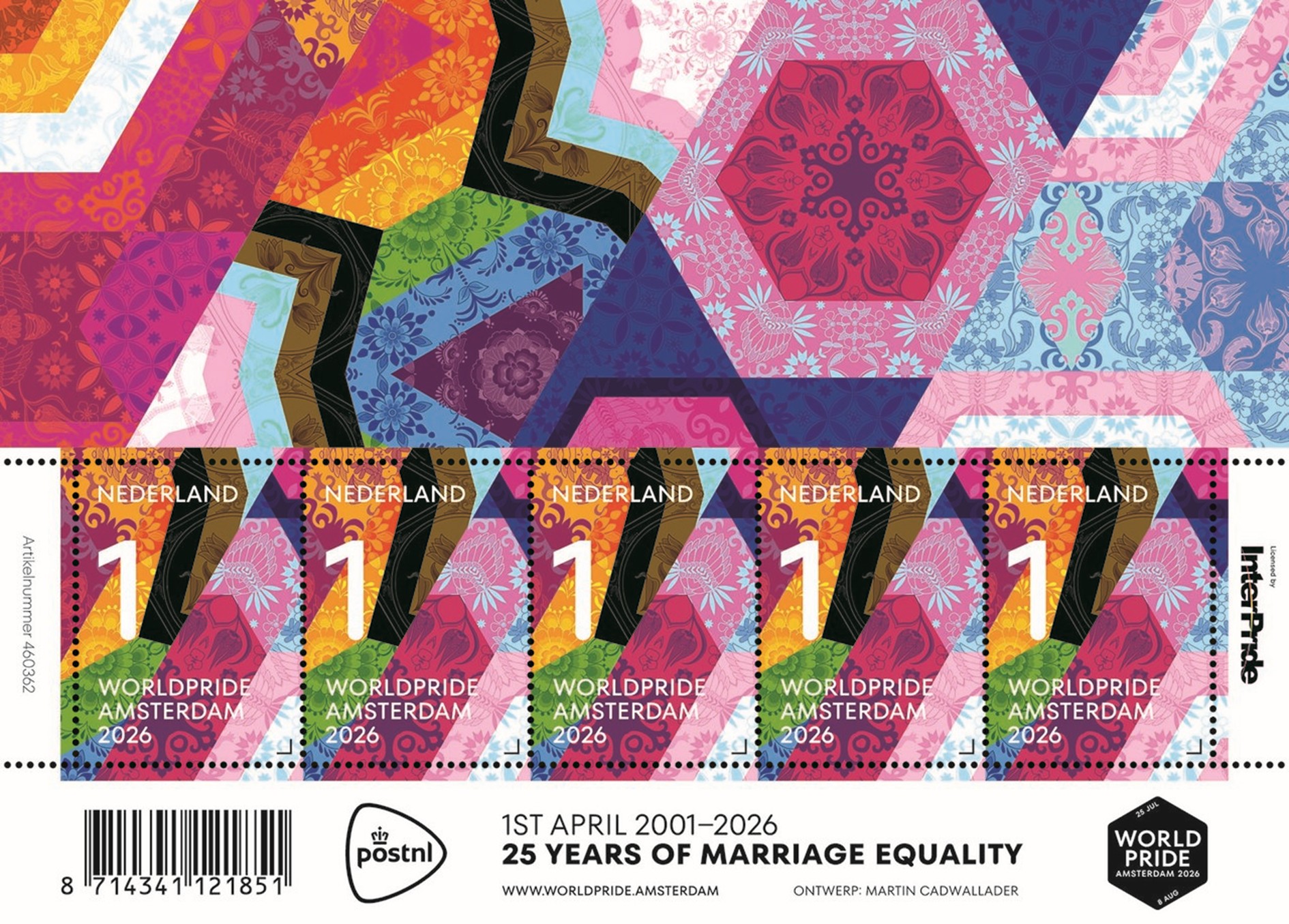 PostNL heeft een speciaal postzegelvel uit voor WorldPride Amsterdam 2026 uitgebracht. De uitgifte valt samen met het moment dat Nederland 25 jaar geleden geschiedenis schreef. Op 1 april 2001 voltrok Job Cohen, destijds burgemeester van Amsterdam, het allereerste huwelijk tussen mensen van hetzelfde geslacht.