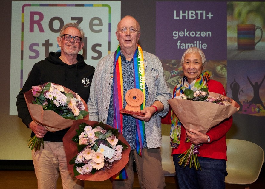 Evenement. Zondag 5 oktober organiseerde Roze 50+ voor de 11e keer de Nationale Roze Ouderen dag, waarmee aandacht wordt gevraagd voor lhbti+ senioren in Nederland. Tijdens deze feestelijke bijeenkomst in Utrecht ontving Roze50+ ambassadeur Gerard Robben en de Gekozen Familie het Hogeland de Senior Pride Community onderscheiding.